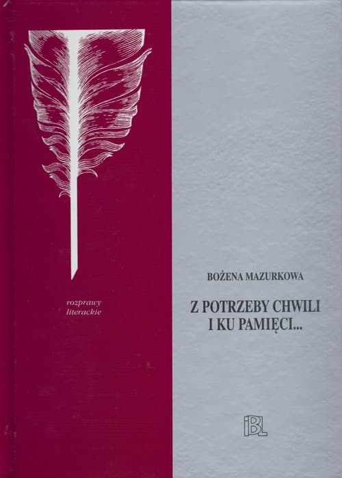Książka Bożeny Mazurkowej ma wymiar monograficzny. Zawarte w niej rozprawy scala naczelna idea skupienia się na faktach literackich z zakresu twórczości publiczno-okolicznościowej i osobisto-okazjonalnej. Wypada stwierdzić, że Bożena Mazurkowa doskonale porusza się w obrębie podjętej problematyki i przedstawionym zbiorem wkracza w grono czołowych badaczy oświeceniowej literatury okolicznościowej. Wszystkie rozprawy mają charakter nowatorski, dotyczą materii ważnych, godnych pilnej, dokładnej analizy. Książka Bożeny Mazurkowej Z potrzeby chwili i ku pamięci... Studia o poezji i prozie oświecenia w sposób istotny dopełni naszą wiedzę o rzeczywistości społeczno-literackiej tej epoki.