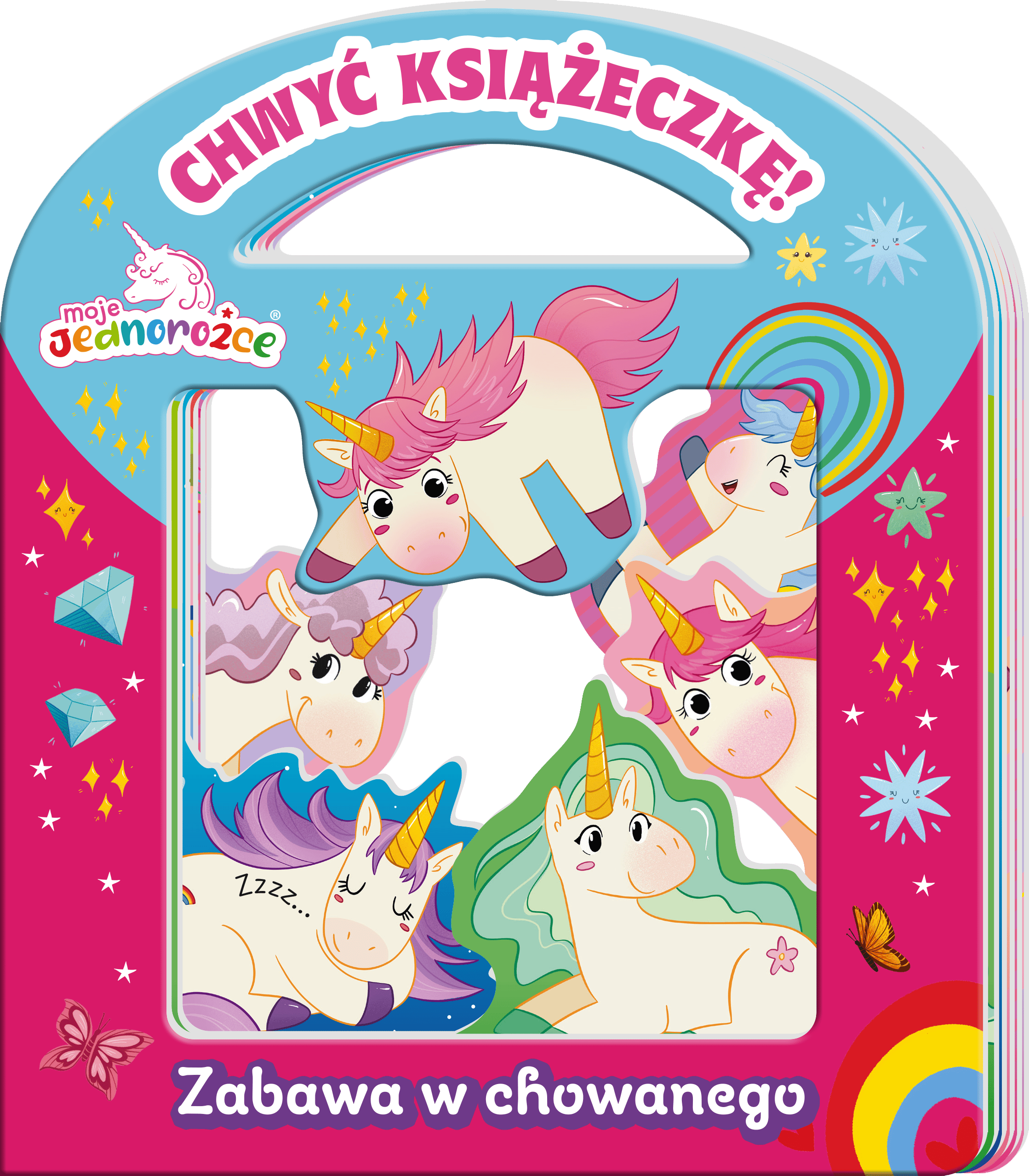 Jednorożce uwielbiają zabawę w chowanego. Chwyć książeczkę i poszukaj ich kryjówek! Książka Chwyć książeczkę to niezapomniana zabawa z ulubionymi Jednorożcami! Książki z uchwytem, których wygodny i atrakcyjny kształt zachęca do włączenia się do niesamowitej przygody.