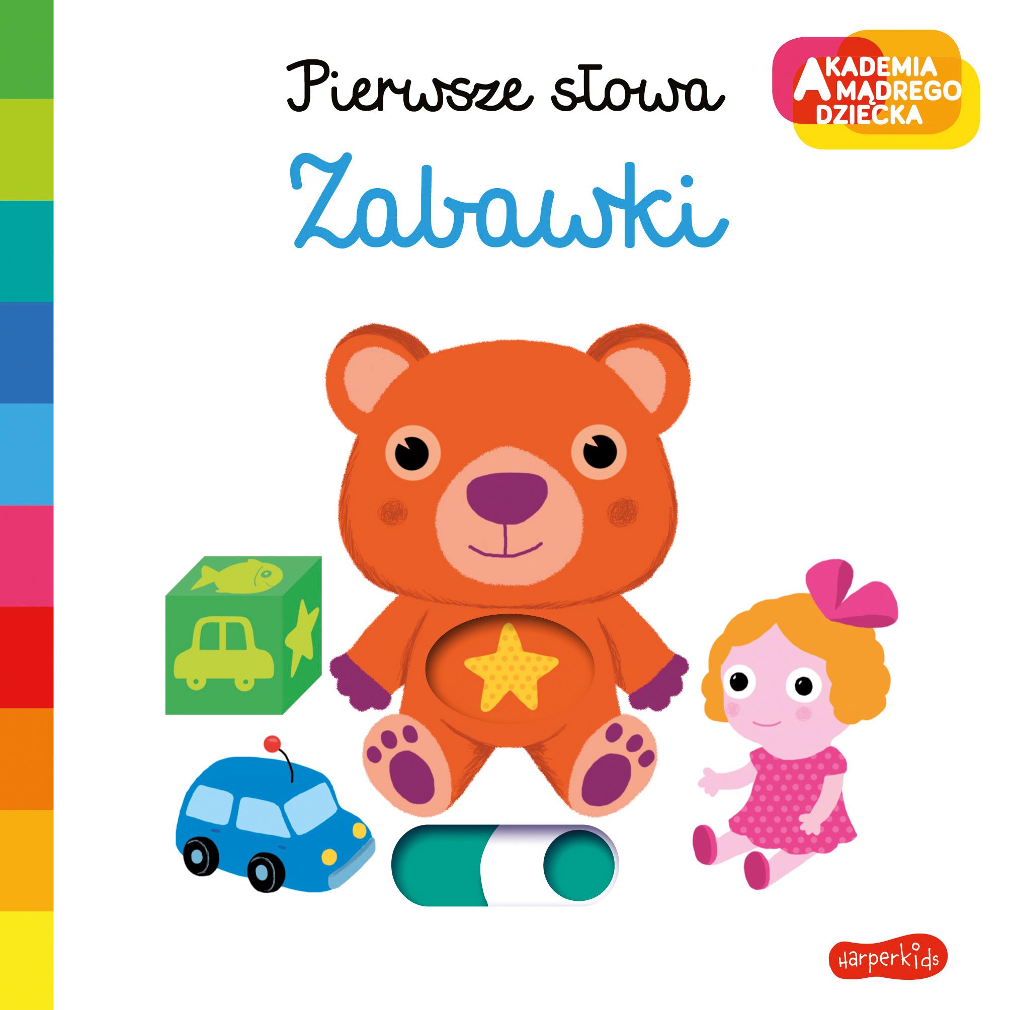 Seria dobrze znanych książeczek Moje pierwsze słowa po raz kolejny powiększyła się o nowe tytuły: Dzidziuś, Rodzina, Zmysły oraz Zabawki. Książeczka pod tytułem Zabawki przedstawia i nazywa popularne i znane rodzicom zabawki: klocki, lalki, ciastolinę czy bębenek. Dzięki kolorowym obrazkom, dziecko uczy się nazywać przedmioty z którymi ma styczność na co dzień. Kartonowe książeczki wykonane są z największą starannością, zaokrąglone strony sprawiają, że książeczka jest bezpieczna dla malucha, a ruchome elementy pozwalają ćwiczyć małą motorykę.Szczegółowe informacje na temat książki Zabawki Akademia mądrego dziecka Pierwsze słowa