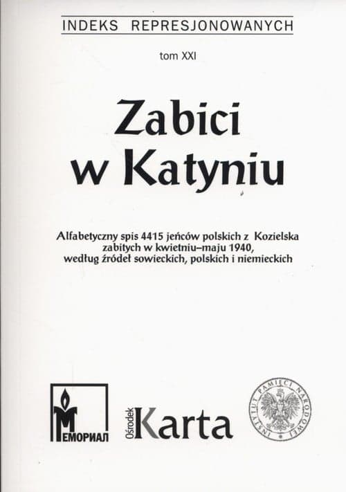 Szczegółowe informacje na temat książki Zabici w Katyniu Indeks Represjonowanych Tom 21
