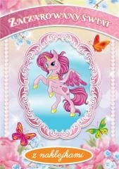 Zaczarowany świat - książeczka do kolorowania z zadaniami dla dzieci. W środku duża wkładka z naklejkamiSzczegółowe informacje na temat książki Zaczarowany świat