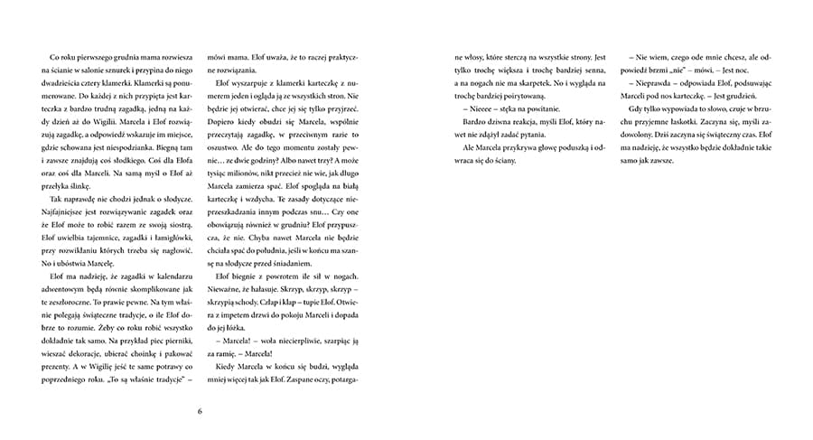 "Detektywistyczna opowieść w 24 rozdziałach do czytania w każdy grudniowy wieczór aż do Wigilii! Elof uwielbia Boże Narodzenie, a zwłaszcza przygotowania do świąt. Domek z piernika, kalendarz adwentowy z zagadkami, gwiazdy betlejemskie, świeczki, dekoracje… Zawsze zajmował się tym wszystkim wraz ze swoją starszą siostrą, ale Marcela wkrótce kończy trzynaście lat i w tym roku zupełnie jej to nie interesuje. Co gorsza, w proteście przeciwko zaproszonym przez mamę gościom, nie zamierza w ogóle obchodzić świąt! Jakby tego było mało, z domu zaczynają ginąć różne świąteczne rzeczy, a w ogrodzie pojawiają się tajemnicze ślady na śniegu. Czyżby jakiś złodziej próbował ukraść święta? To już ósmy tytuł wydawanego przez Zakamarki co roku literackiego kalendarza adwentowego. Za każdym razem tworzy go inna para autorsko-ilustratorska i za każdym razem jest to zupełnie inna książka! Dotąd ukazały się: „Wierzcie w Mikołaja” – Lotta Olsson, il. Benjamin Chaud „Prezent dla Cebulki” – Frida Nilsson, il. Maria Nilsson Thore „Święta dzieci z dachów” – Marten Sandén, il. Lina Bodén „Hurra, są Święta!” – Ulf Nilsson, il. Emma Adbage „Kosmiczne święta” – Ingelin Angerborn, il. Per Gustavsson „Grudniowy gość” – Siri Spont, il. Alexander Jansson „Jak ratowaliśmy Wigilię” – Ellen Karlsson, il. Cecilia Heikkilä "