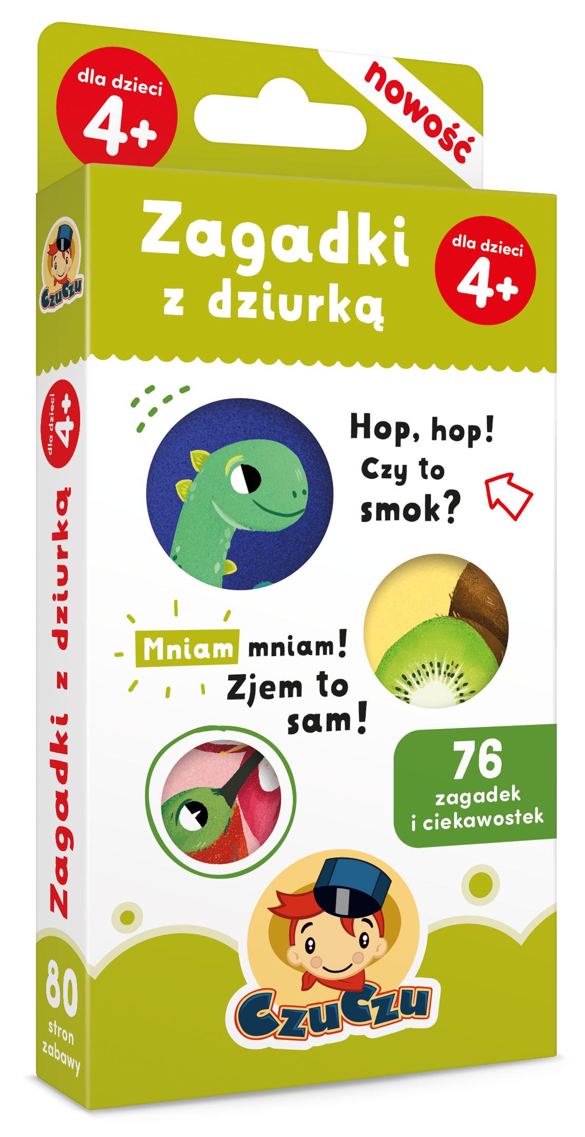 Dzieci uwielbiają zagadki, a Zagadki z dziurką są wyjątkowo ekscytujące! Zagadki z dziurką dla dzieci 4+ to edukacyjna książeczka stworzona z myślą o ciekawych świata czterolatkach. Znajdziecie w niej 38 zgadywanek przedstawionych w wyjątkowy sposób. Pytania w formie rymowanych wierszyków i fragmenty ilustrowanych odpowiedzi, widoczne przez specjalne dziurki, sprawiają, że zgadywanie jest ekscytujące jak nigdy dotąd! Każdej zagadce towarzyszy pobudzająca wyobraźnię ciekawostka lub zadanie. Dzięki poręcznemu formatowi, Zagadki z dziurką możecie zawsze mieć przy sobie. Zabawa z książeczką angażuje zmysły, rozwija wyobraźnię i spostrzegawczość, a przede wszystkim jest tak zajmująca, że nie będziecie chcieli jej kończyć! W serii Zagadki z dziurką dostępne są książeczki dla dzieci w wieku 2, 3, 4 i 5 lat.Szczegółowe informacje na temat książki Zagadki z dziurką dla dzieci w wieku 4+