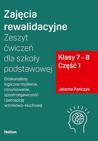 Zajęcia rewalidacyjne Zeszyt ćwiczeń dla szkoły podstawowej, klasy 7 - 8. Część 1. Doskonalimy logiczne myślenie, rozumowanie, spostrzegawczość i percepcję wzrokowo-słuchową to zbiór zadań, które uczą analitycznego podejścia do postawionego problemu, doskonalą rozumowanie, logiczne myślenie i koncentrację uwagi.