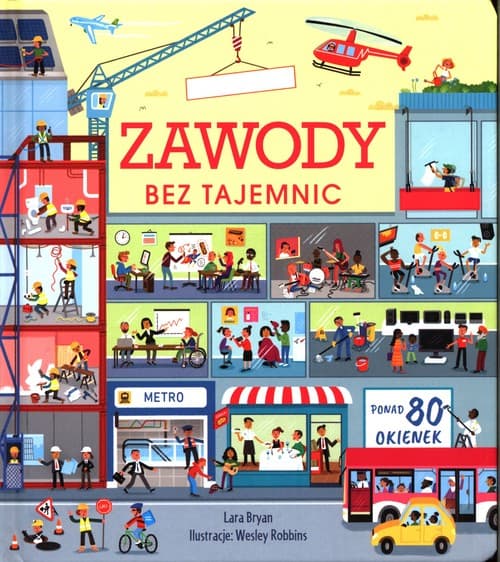 Dzięki tej wyjątkowej książce dowiesz się, co takiego całymi dniami robią dorośli. Otwieraj okienka i sprawdzaj, kto pracuje na lotnisku, kto przy wznoszeniu wieżowców, a kto pod ziemią lub na świeżym powietrzu. Przyjrzyj się pracy naukowców i odkrywców. Poznaj ponad sto zawodów – od pielęgniarki i muzyka po astronautkę.