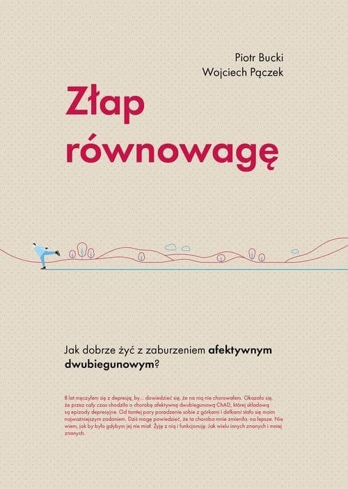 Choroba afektywna dwubiegunowa to druga najczęstsza przyczyna niezdolności do pracy z powodów psychiatrycznych. Istnieje więc spora szansa, że albo jesteś w grupie ryzyka, albo znasz kogoś, kto w niej jest. Ale spokojnie. To nie wyrok. I może zabrzmi to dziwnie, ale w pewnym stopniu to błogosławieństwo. Jeśli nauczysz się z nią dobrze żyć, to może się okazać, że jesteś lepszą wersją siebie. Taką, która potrafi dobrze wykorzystać jeden i drugi biegun. Po angielsku ta choroba nazywa się bipolar disorder. Ja myślę o niej w kategorii bipolar in order. To gra słów. Disorder oznacza zaburzenie. In order oznacza w porządku. I taka jest moja rola. Pokazać ci, twoim znajomym, przyjaciołom, że może być i będzie w porządku. Zdecydowałem się zacząć pisać książkę, którą mogę polecić wszystkim zainteresowanym tą chorobą. Nie chciałem jednak by to była książka pisana z perspektywy li tylko pacjenta. Do współpracy zaprosiłem psychiatrę-terapeutę. Tak, by moje spojrzenie uzupełnić o głos eksperta. To książka dla tych, którzy nie chcą czuć się sami, dla ich rodzin, dla znajomych. Ja dałem radę. Ty też dasz. Piotr Bucki