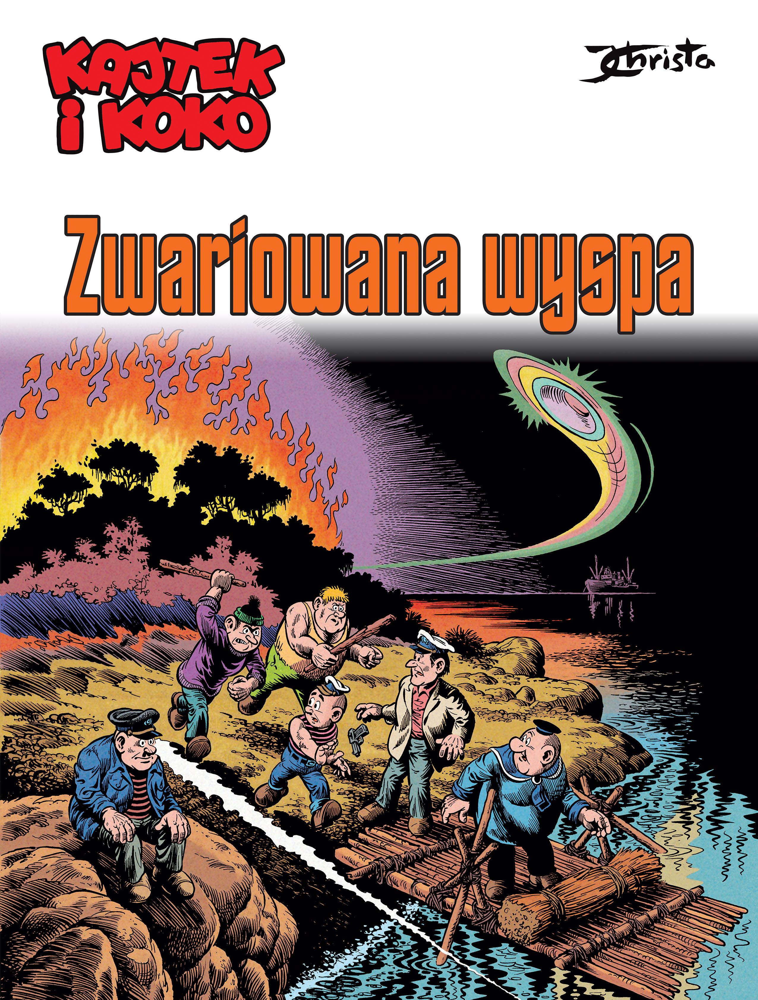 „Zwariowana Wyspa” to ostatnia historia z Kajtkiem i Kokiem wymyślona przez Janusza Christę (1934–2008) przed wysłaniem tych bohaterów na czteroletnią włóczęgę po kosmosie.