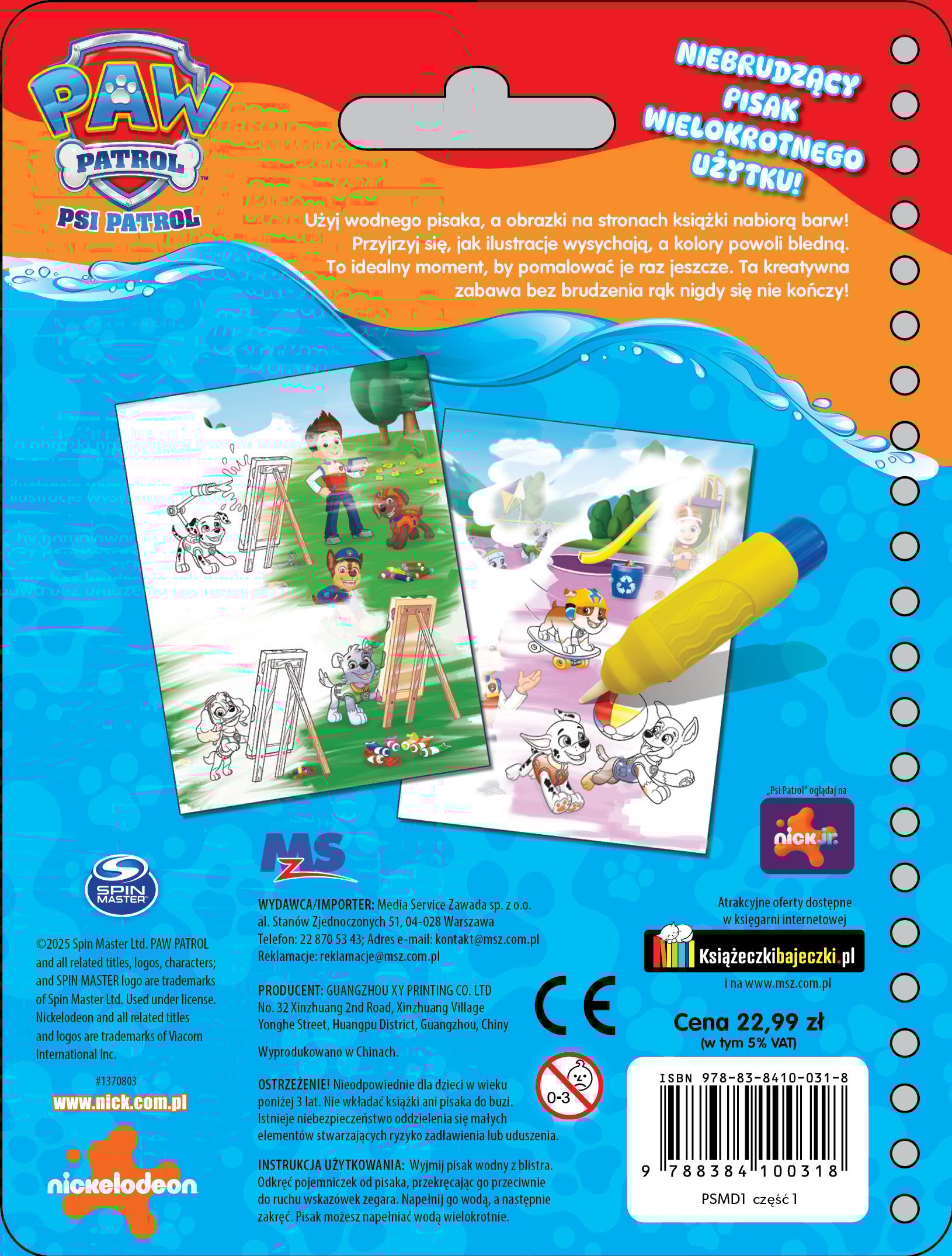 Wystarczy napełnić specjalny pisak wodą i… malować! Na stronach książki pojawią się kolorowe obrazki z ukochanymi postaciami – jak za dotknięciem czarodziejskiej różdżki. Po wyschnięciu kolory znikają, więc książkę można używać wielokrotnie!